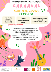 Mercredi 25 mars 2026 à partir de 14h, ce sera la 1er CARNAVAL au conservatoire Jean-Wiéner.